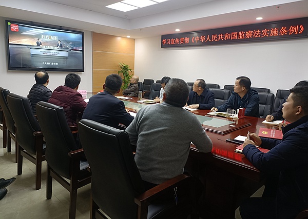 為進一步增強黨員干部對黨紀法規(guī)的敬畏意識,筑牢拒腐防變的思想防線。12月7日,公司紀委組織專題學習宣傳《中華人民共和國監(jiān)察法實施條例》(以下稱《條例》),會議由紀委書記楊昭主持,公司領(lǐng)導班子、各部門負責人、各支部書記、紀檢委員共30余人參加了會議。