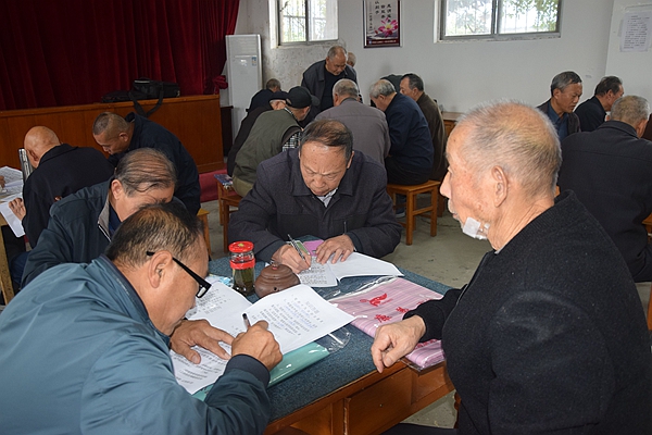 會議在現場圍繞黨的十九大精神和《黨章》、《黨規》開展了答題活動,老黨員們都戴上了老花鏡,全神貫注,時不時查閱書籍、手機,力求準確地作答每道題,學習氣氛異常濃厚。會議最后表彰了離退休黨總支部三名優秀黨務工作者和五名優秀黨員。