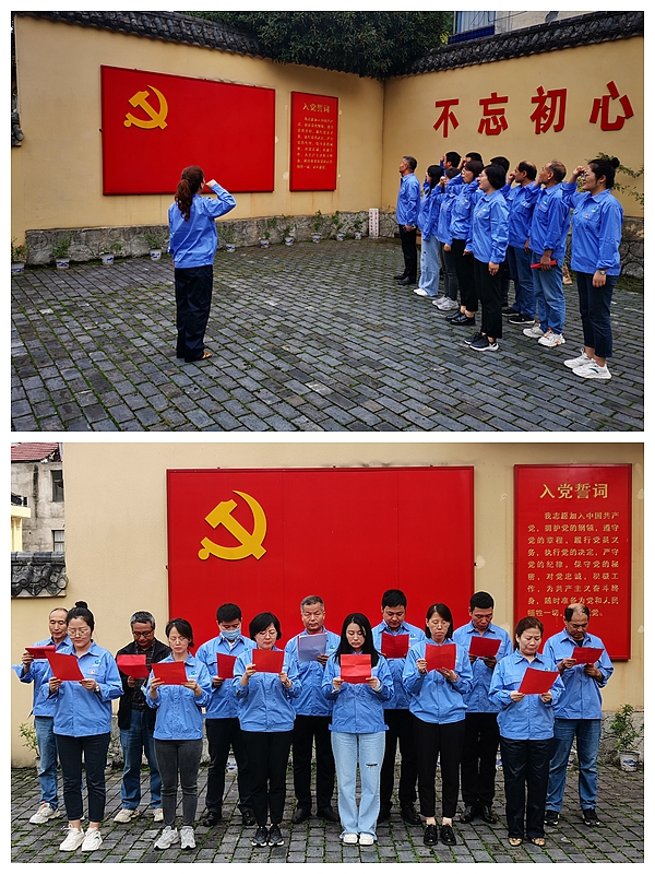 小廣場黨旗下,在支部書記龍智湘的帶領下,同志們舉起右手,握緊拳頭,莊嚴宣誓為共產主義事業奮斗終身,為實現中華民族的偉大復興而努力奮斗,重溫入黨誓詞。隨后,集體詩歌朗誦《黨旗下》,所有人員精神抖擻、全神貫注,用抑揚頓挫的聲音和激情昂揚的語氣認真誦讀每字每句,訴說著我們永遠不變的莊嚴誓言。