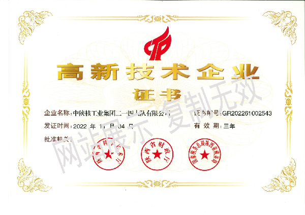 近日,公司被陜西省科學技術廳、陜西省財政廳及國家稅務總局陜西省稅務局聯合認證為“高新技術企業”。