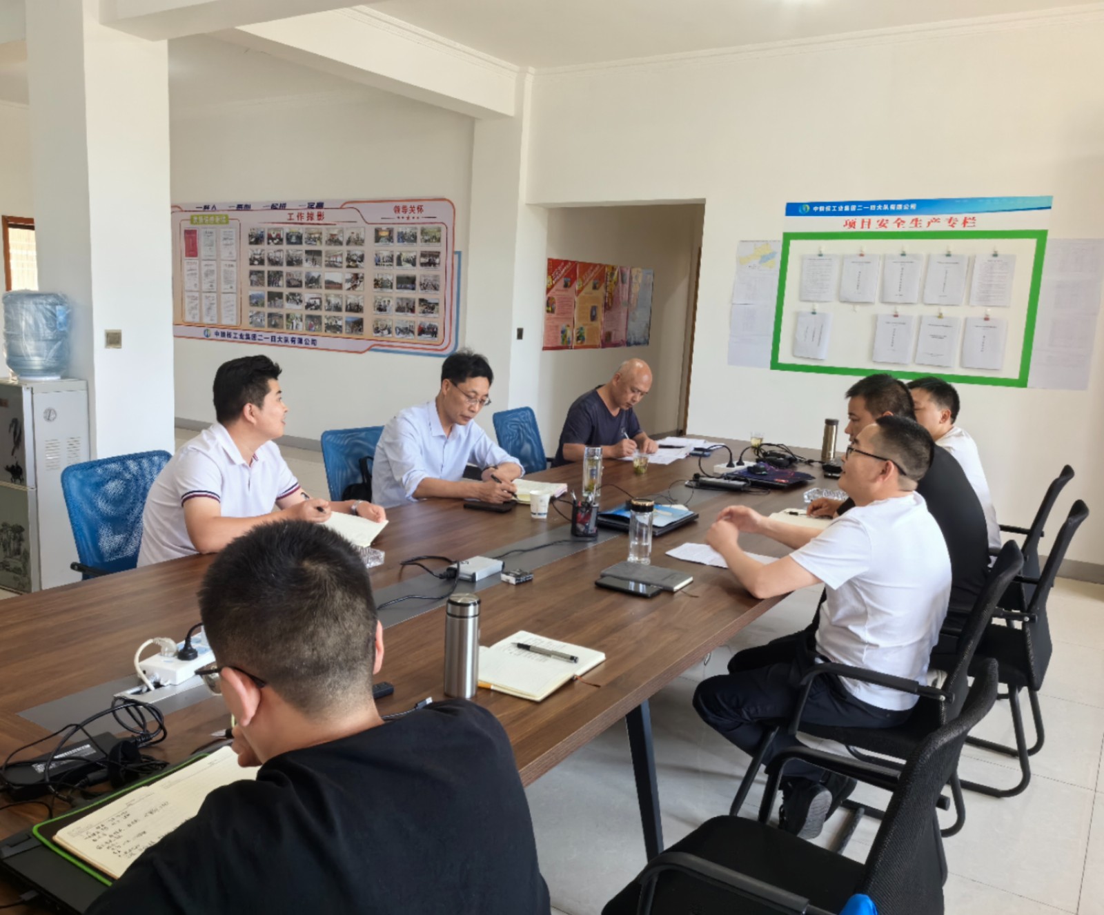 董連志對項目安全生產日志、安全會議培訓等資料進行了逐項檢査,針對安全檢査中發現的問題,要求項目部限期整改;同時提出要嚴格落實安全生產責任制,做好安全生產工作,做好夏季防暑防汛工作。李陽要求嚴格落實保密管理制度,做好項目資料保密工作。