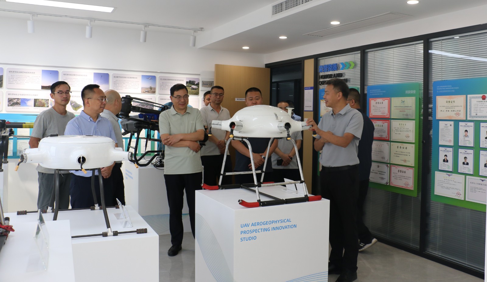 會后,劉世海一行參觀調(diào)研公司無人機航空物探創(chuàng)新工作室。