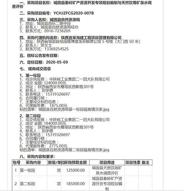 5月14日,從陜西省政府采購網(wǎng)獲悉,公司成功中標《城固縣秦嶺專項規(guī)劃編制與天然飲用水調(diào)查評價》項目2個標段。