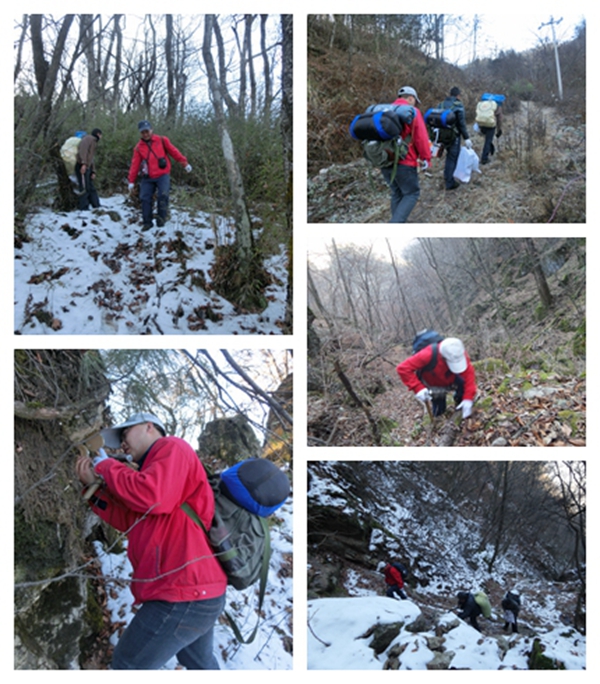 為了確保突擊效果和安全,經反復論證,公司地調院成立了由高政偉和朱文棟兩名黨員帶隊組成2個找礦突擊組,各組由2名黨員、2名民工組成,他們攜帶干糧、帳篷等野外作業、生存必備的工具,從石槽河兩條主溝由北向南穿越找礦。公司總工程師王義忠也以身作則加入到朱文棟帶隊的突擊小組。突擊小組發揚“四個特別”和“三光榮”精神,不畏艱險和寒冷,在冰天雪地中艱難前進,餓了吃點干糧、渴了以雪當飲,晚上在帳篷中露宿,徒步2天分別翻越“摩天嶺”海拔2180米的“天上”和2080米的“南天門”高峰進入作業區,通過認真仔細觀測,終于找到了晶質石墨礦帶。突擊隊在采集完樣品后,又負重艱難跋涉走出叢林,勝利完成了此次突擊任務。