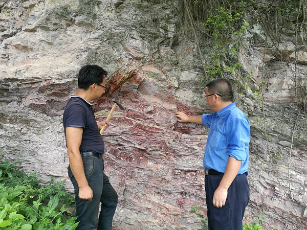 王義忠一行首先對(duì)野外地質(zhì)露頭進(jìn)行了實(shí)地查看、追索,并提出指導(dǎo)意見(jiàn)。