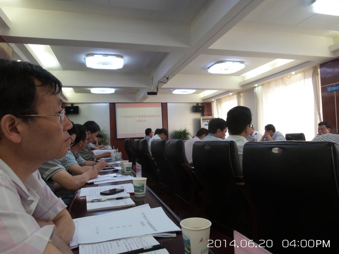 下午室內會議先由各承擔整裝勘查單位做項目匯報。214大隊承擔的寧強縣劉家坪—寬川鋪金多金屬礦整裝勘查項目由二一四大隊地調院總工王鵬匯報。項目匯報完后,各承擔單位、整裝勘查涉及的市縣領導分別作表態發言,陜核集團王建國總工在表態發言中提出了實施好整裝勘查要“處理好四種關系、解決好四個問題”,進一步明確了整裝勘查實施的方略。