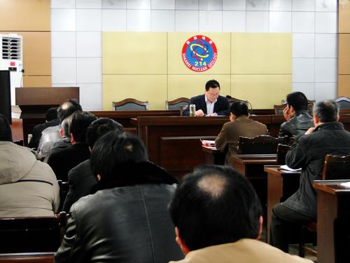 3月6日下午,大隊在機關三樓會議室召開專題會議,學習傳達陜核地質局2012年工作會議、紀檢監察會議精神。會議由工會主席、紀委書記司金強主持,機關全體工作人員、各經營單位班子成員共50余人參加。